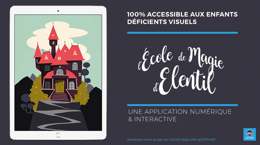 L’école de magie d’Elentil est un livre audio numérique interactif dont l’enfant est le héros. Grâce à une interface utilisateur sans bouton mais fonctionnant uniquement via des gestes spécifiques, des illustrations contrastées et un audio de qualité, l’application est entièrement accessible aux enfants aveugles et malvoyants.