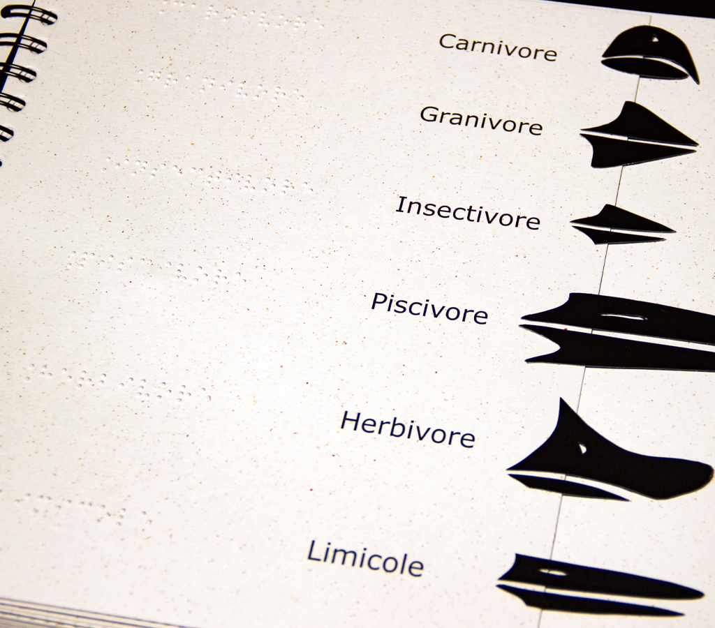 Réécriture du texte abordant différentes espèces d’oiseaux présentes dans le bassin de la Loire. Les oiseaux sont classés par milieu et particularité (morphologie, environnement, type d’alimentation, etc.). Cet album tactile illustré et en braille et en gros caractères. Il est disponible à la maison de la Loire d’Indre et Loire.