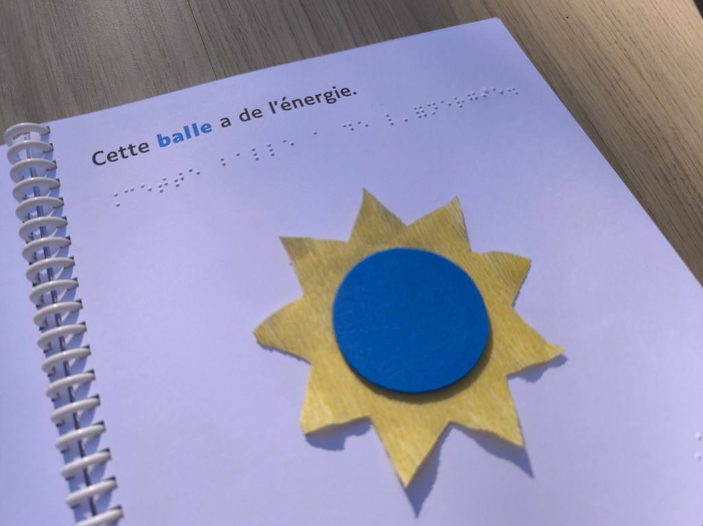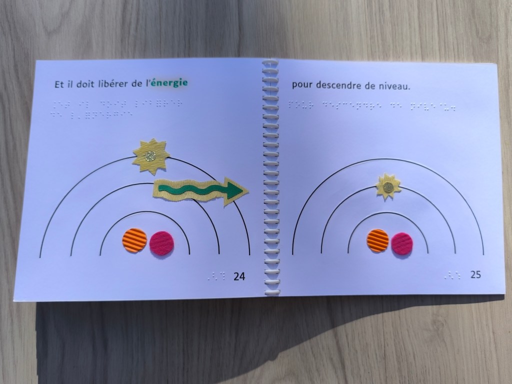 Ce livre en braille, gros caractères et illustrations tactiles, est une adaptation libre de La physique quantique pour les bébés, de Chris Ferrie.